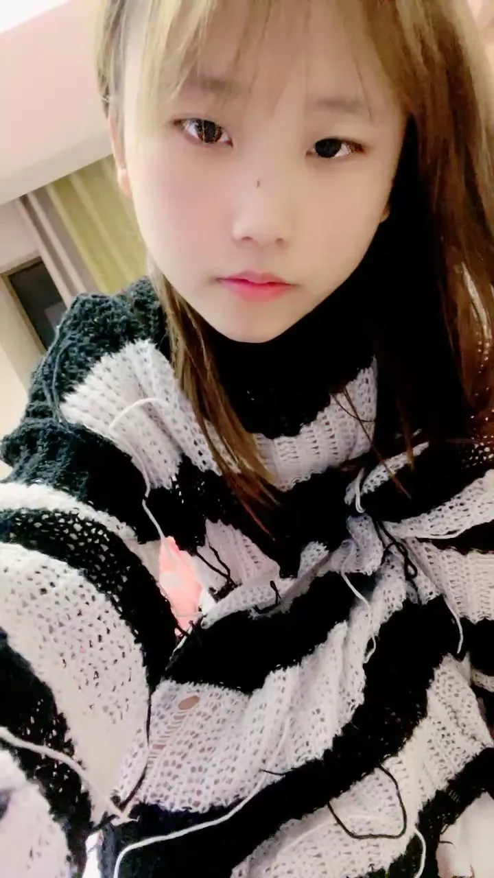 Asian petite anal bedroom is the focus of this video, featuring a young Asian girl with long light brown hair and a petite build. She starts by sitting on a bed covered in pink sheets, wearing a black-and-white striped knit sweater dress that she gradually removes until she’s fully nude. Throughout the sequence, she spreads her legs playfully for the camera, making hand gestures and looking directly at it. The setting is consistentβa bedroom with pink walls, green curtains, and rumpled linens.
