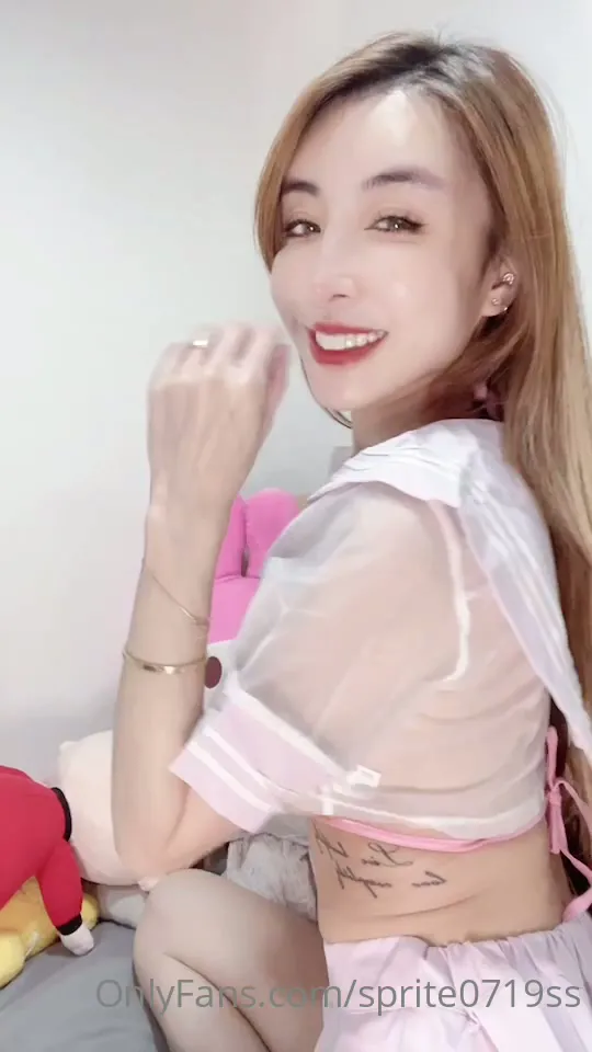 This Japanese Petite Dildo solo session features a slender East Asian girl with long dark hair spreading her legs and riding her own cock in a cozy bedroom. She wears an adorable pink outfit—a sheer white blouse with puffy sleeves and a matching bow—revealing a pink bra underneath. Delicate tattoos peek from her midriff as she slams the dildo into her pussy, adjusting her skirt and top while thrusting aggressively.