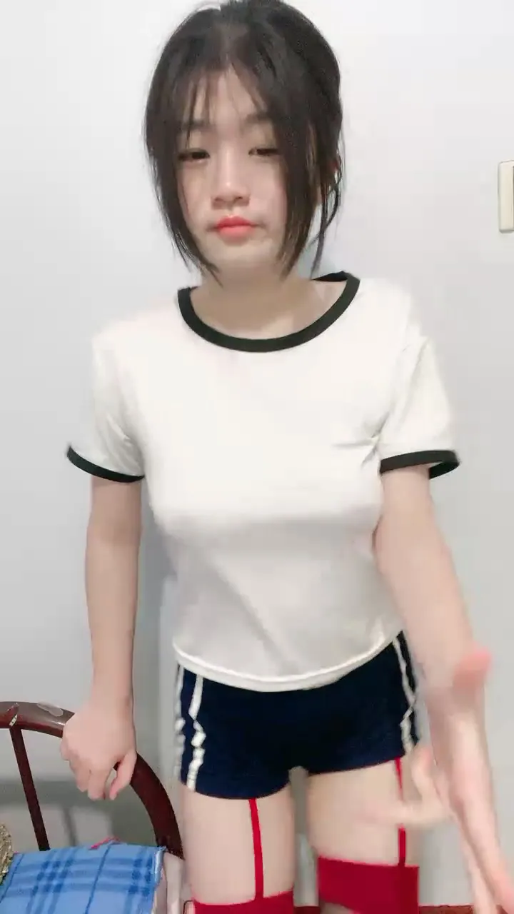 She wears black shorts paired with red stockings as she switches positions, riding her fingers aggressively and interacting with bedroom objects. This petite Chinese beauty has a curvy yet proportionate body that moves confidently through various masturbation techniques. The camera captures every detail of her amateur performance as she enjoys unfiltered self-pleasure.