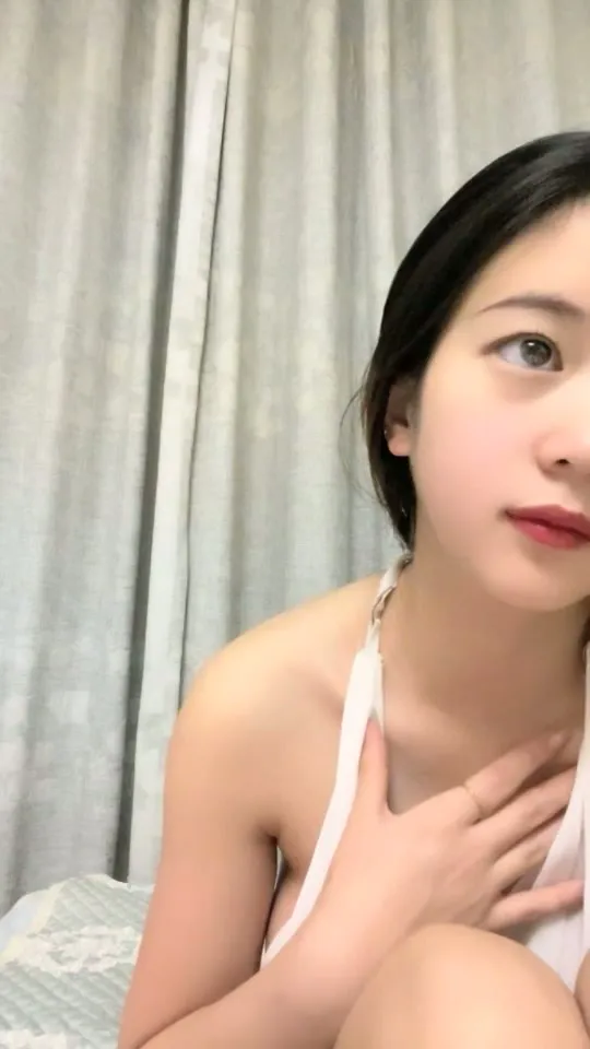 This petite Japanese girl with bangs starts by touching her face before fucking herself in a white lingerie bedroom. Sheβs curvy and gorgeous, wearing a halter top at first, then removes it to expose her chest while facing the camera. The video shows her adjusting clothes, moving from a chair to lying on bed.