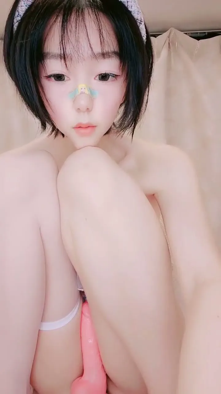 This petite Japanese girl fucks a pink vibrator aggressively while lying back on a white bed. Her short black hair is styled neatly, often with a headband as she spreads her legs and rams it deep into her soaked slit. She adjusts the dildo with one hand for maximum penetration, letting out moans of pleasure as she gets pounded by the toy.