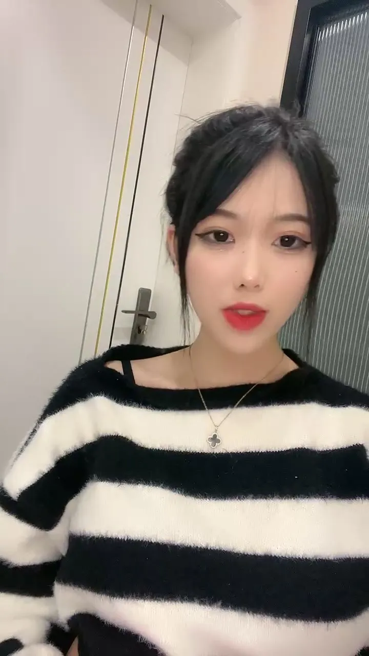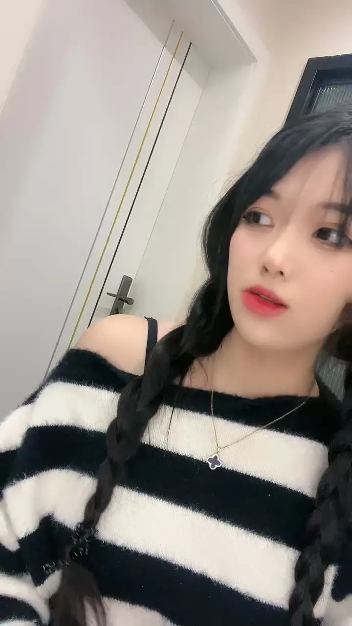 This petite Japanese girl vibrator fucks a pink toy, spreading her legs wide open in a simple bedroom setting. She starts wearing a black-and-white striped sweater, slowly peeling it off to reveal a black crop top before going completely nude above the waist. Her long dark hair is styled in tight braids as she rhythmically rides the cock-shaped toy, moaning loudly with each thrust.